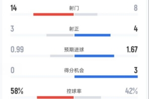 控球率58%-42%