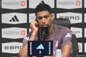 24直播网01月08日讯 皇马中场贝林厄姆赛前谈西超杯对阵马竞,称其强劲,需吸取联赛失利教训。他谈到姆巴佩加盟后自己位置更靠后,需覆盖全场;支持维尼修斯;否认更衣室矛盾及主导引进英格兰球员;称球队团结,渴望为球迷复仇。
