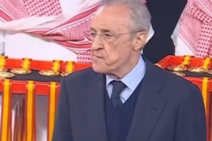 在昨天的西超杯决赛,巴萨3-2击败皇马夺冠。而在赛后现场颁奖、颁发奖牌时,弗洛伦蒂诺的表情有些失落。