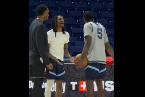 今日灰熊踩场训练,莫兰特和队友文斯·威廉姆斯疑似争吵,一开始两人在讨论某个话题,指着球场,后续上升到了争吵,有助教前来拉开也无济于事,两人互相摊手,莫兰特言辞激烈,最终两人不欢而散。