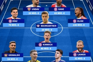 24直播网01月17日讯 德甲半程最佳阵容公布,凯恩、基米希领衔,拜仁共5将入选,格里马尔多在列。阵容包括门将费尔南德斯,后卫施洛特贝克、武什科维奇、莱默尔,中场路易斯·迪亚斯、鲍姆加特纳、奥利塞,以及前锋翁达夫。