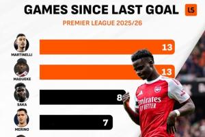 24直播网01月19日讯 阿森纳虽领跑英超,但队内攻击手集体陷入联赛球荒。马丁内利、马杜埃凯13轮无进球,萨卡8轮,梅里诺7轮,其他主力前锋亦多轮未能取得进球,进攻端表现令人担忧。
