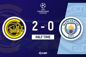 24直播网01月21日讯 欧冠联赛,曼城客场0-2惨遭博德闪耀逆转。上半场霍格2分钟内梅开二度,布隆伯格两送助攻。尽管哈兰德错失良机,但曼城防线送礼,半场即落后。