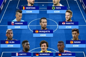 后卫:阿尔巴、乌姆蒂蒂、胡梅尔斯、博阿滕、纳瓦斯