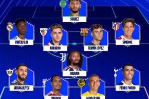 24直播网01月23日讯 欧足联公布欧冠周最佳阵容,皇马前锋维尼修斯、巴萨中场费尔明、利物浦后卫范戴克及尤文图斯前锋K·图拉姆领衔入选。该阵容还包括奥林匹亚科斯门将佐拉基斯等球员,展现了本周欧洲赛场上的出色表现。