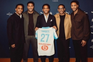24直播网01月24日讯 马赛官宣签下费耶诺德中场昆滕·廷伯。值得一提的是,其兄长阿森纳后卫朱利安·廷伯也出席了仪式。廷伯一家为五兄弟,均拥有库拉索血统,其中大哥迪伦效力于荷乙并入选库拉索国家队,该队曾打入世界杯正赛。