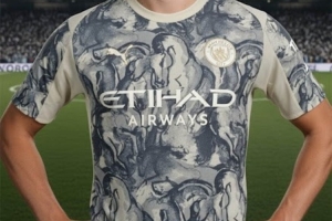 24直播网01月24日讯 曼城与彪马将发布2026马年限定球衣。该款球衣以米白为底,融入东方马年元素与中国水墨画设计,正面布满抽象马首图案,黑色细节点缀。作为彪马最具创意的文化系列作品,包含赛前、训练及夹克等单品,未来数周男女队将穿着。