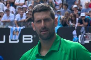 24直播网讯 澳网男单1/4决赛,38岁德约科维奇在0-2落后时,因对手穆塞蒂退赛晋级。这已是他连续两轮不战而胜。赛后,德约科维奇为对手感到遗憾,认为对方本该获胜,并祝愿其早日康复。
