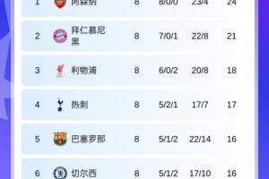 下一篇: 主场优势!欧冠直通16强8队:阿森纳拜仁前二,利物浦热刺三四名