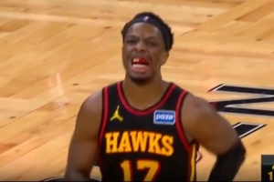 GIF-杰伦·布朗肘到奥孔武嘴部
