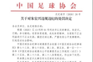 24直播网01月29日讯 中国足协公布“假赌黑”整治名单,朱宏兴因行贿、赌球、操控比赛等严重违规行为,被终身禁止参与足球活动。足协要求足坛各界以此为鉴,抵制不正之风,共同维护中国足球的公平与发展。