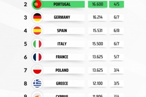 体育资讯1月30日讯 Football Rankings统计了本赛季各联赛的欧战积分,最终排名前两位的联赛将多获得一个欧冠名额。