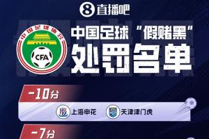 体育资讯01月30日讯 昨日上午,足球行业“假赌黑”专项整治行动的相关会议在北京召开,13家职业俱乐部被罚分,其中中超9队,申花、津门虎被罚10分。