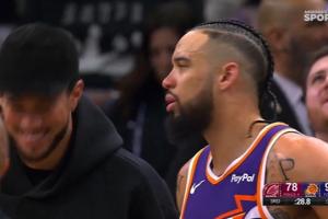 GIF-狄龙被吹假摔,布克看笑了,狄龙这个表情是又委屈又烦