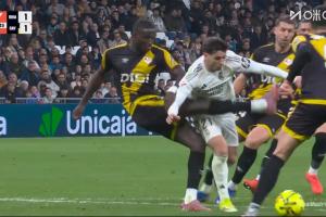 体育资讯02月01日讯 皇马vs巴列卡诺第98分钟,迪亚斯在对手禁区内倒地,裁判判罚点球!姆巴佩第100分钟点射绝杀