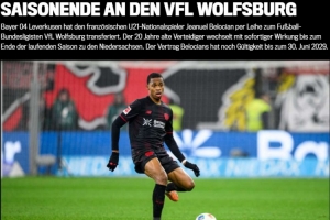 现年20岁的法国U21后卫让埃尔·贝洛西安已被勒沃库森租借至德甲球队沃尔夫斯堡,租期直至本赛季结束。贝洛西安的原合同有效期至2029年6月30日。