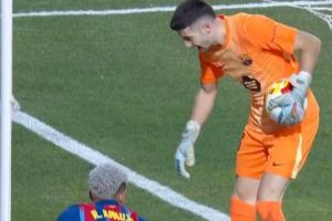 24直播网02月04日讯 巴萨国王杯2-1晋级。比赛中,后卫霍安·加西亚在防守成功后,误以为比赛已暂停,竟将球带出底线,意外送给对手一个角球,上演了一幕啼笑皆非的失误。尽管如此,球队仍获胜,阿劳霍也取得进球。