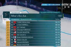 24直播网讯 冬奥会单板滑雪男子大跳台资格赛第二轮,苏翊鸣、杨文龙表现优异,苏以87.75分、杨以80.25分暂列前茅。首轮表现平平的苏翊鸣次轮强势反弹。葛春宇两轮总得分仅65.75分,已无缘晋级。