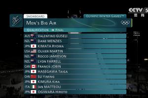 24直播网讯 米兰冬奥会单板滑雪男子大跳台预赛结束,卫冕冠军苏翊鸣以第4名晋级决赛。葛春宇、杨文龙无缘决赛。晋级决赛门槛为总得分163分,竞争激烈。选手需完成三轮包含两个不同方向的动作,取最高分相加,排名前12晋级。