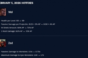 24直播网讯 下个热补丁将加强梅尔与劫。梅尔的成长生命值、被动基础伤害及法强加成、W和E技能的法强加成均获提升。打野劫的被动对野怪伤害与史诗级野怪伤害上限也得到增强。