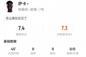 上一篇: 热苏斯本场数据:1进球1过人成功+16次丢失球权,评分7.6