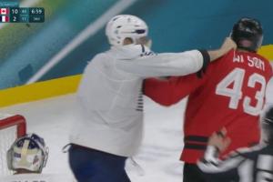 24直播网讯 冬奥会冰球赛中,法国与加拿大球员在第三节发生激烈冲突,双双被罚下场。尽管加拿大以10-2大胜,但这场斗殴在国际赛场上极为罕见。不过,两人均未受额外处罚,可继续参赛。