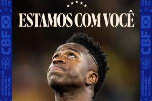 24直播网02月18日讯 欧冠皇马小胜本菲卡,但焦点在维尼修斯遭种族歧视致比赛中断。赛后巴西国家队发公告,强烈谴责种族歧视为犯罪行为,赞扬其勇气,并声援表示“你并不孤单”,称将永远与他站在一起,共同反对一切歧视。