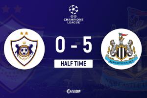 体育资讯2月19日讯 北京时间1:45,欧冠联赛淘汰赛附加赛卡拉巴赫vs纽卡,上半场戈登上演大四喜!特里皮尔助攻佳夫破门!纽卡5-0领先卡拉巴赫!