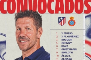 24直播网02月21日讯 马竞公布西甲第25轮主场对阵西班牙人的大名单。门将方面,奥布拉克领衔。后防线上,吉梅内斯、略伦特等悉数在列。中场由科克、巴埃纳坐镇,格列兹曼、瑟尔洛特等前锋构成锋线,西蒙尼之子朱利亚诺入选。