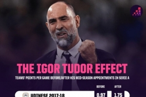 据统计,图多尔此前在意甲5次中途接手球队后,战绩均有所提升,具体情况如下(场均积分变化):