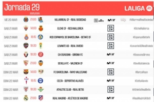 24直播网02月24日讯 西甲官方公布第29轮赛程。焦点战为3月22日21点巴萨主场战巴列卡诺,次日凌晨4点上演马德里德比,皇马对阵马竞。其他比赛也于3月21日至23日陆续进行。