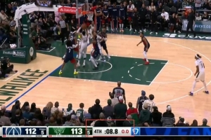 GIF-字母哥还剩8.8秒时拿到前场篮板立刻起身补篮没进